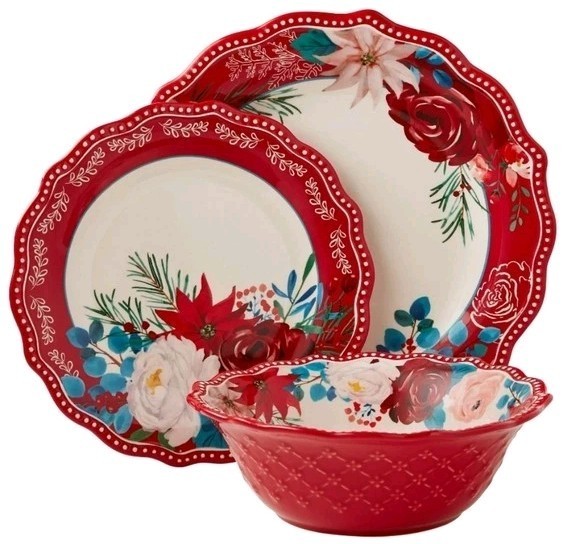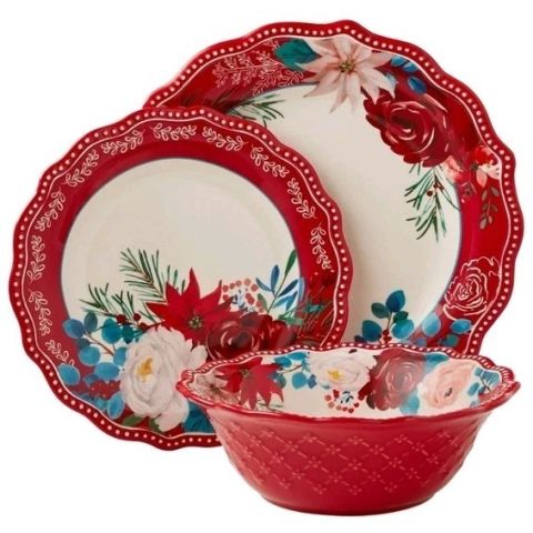 The Pioneer Woman Wishful Winter Rose Christmas Holiday Dinnerware Set 12pcs NIB